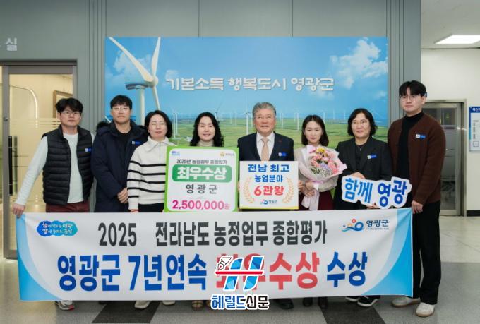 [Çì·²µå½Å¹® = ¼Û±Ù³² ±âÀÚ] ¿µ±¤±ºÀº Àü¶ó³²µµ 2025³â ³óÁ¤¾÷¹« Á¾ÇÕÆò°¡¿¡¼ 7³â ¿¬¼Ó ÃÖ¿ì¼ö»óÀ» ¼ö»óÇϸç, ³óÁ¤ Àü¹Ý¿¡¼ÀÇ ±ÕÇü ÀÖ´Â ¼º°ú·Î µµ³» ÃÖ°í ¼öÁØÀÇ ³óÁ¤ ¿ª·®À» ´Ù½Ã Çѹø ÀÔÁõÇß´Ù.