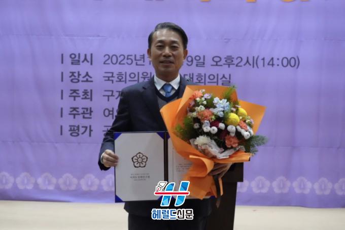 [Çì·²µå½Å¹® = ³ë½Â¾ð ±âÀÚ] Àü¶ó³²µµÀÇȸ ÀÌÀçÅ ÀÇ¿ø(´õºÒ¾î¹ÎÁÖ´ç¤ý³ªÁÖ3)ÀÌ Àü±¹ Áö¹æÀÇȸ ÀÇ¿øÀ» ´ë»óÀ¸·Î ÇÑ ¡®2025 ´ëÇѹα¹ Áö¹æÀÚÄ¡Æò°¡ ÀÇÁ¤Á¤Ã¥´ë»ó¡¯¿¡¼ 2³â ¿¬¼Ó ÃÖ°í»óÀÎ ¡®´ë»ó¡¯À» ¼ö»óÇϸç ÀÇÁ¤È°µ¿ ¼º°ú¸¦ ´Ù½Ã Çѹø ÀÔÁõÇß´Ù.
