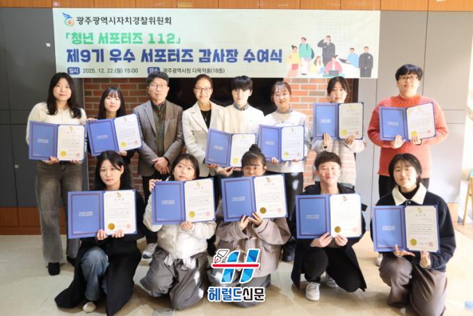 [Çì·²µå½Å¹® = ³ë½Â¾ð ±âÀÚ] ±¤ÁÖ±¤¿ª½Ã ÀÚÄ¡°æÂûÀ§¿øÈ¸´Â 22ÀÏ ½Ãû ´Ù¸ñÀûȦ¿¡¼ ¡®Á¦9±â û³â ¼Æ÷ÅÍÁî112¡¯ ¿ì¼ö ¼Æ÷ÅÍÁî¿¡°Ô °¨»çÀåÀ» ¼ö¿©Çß´Ù.