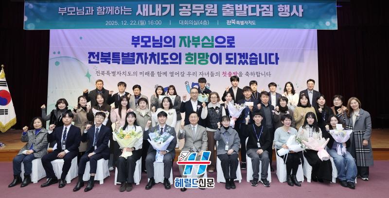 [Çì·²µå½Å¹® = ³ë½Â¾ð ±âÀÚ] ÀüºÏƯº°ÀÚÄ¡µµ°¡ °øÁ÷¿¡ ù¹ßÀ» ³»µó´Â »õ³»±â °ø¹«¿øµé°ú ±× °¡Á·À» ÃÊÃ»ÇØ ¶æ±íÀº Ãâ¹ßÀÇ ÀÚ¸®¸¦ ¸¶·ÃÇß´Ù.