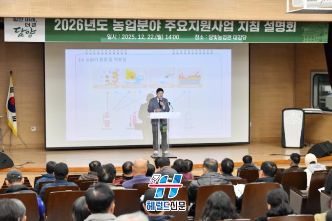 [Çì·²µå½Å¹® = Àü¿µ±Ô ±âÀÚ] ´ã¾ç±º(±º¼ö Á¤Ã¶¿ø)Àº Áö³ 22ÀÏ ´ãºû³ó¾÷°ü ´ë°´ç¿¡¼ °ü³» ³ó¾÷ÀÎÀ» ´ë»óÀ¸·Î ¡®2026³âµµ ³ó¾÷ ºÐ¾ß ÁÖ¿ä Áö¿ø»ç¾÷ Áöħ¼³¸íȸ¡¯¸¦ ¿°í, ³ó¾÷ ºÐ¾ß º¸Á¶»ç¾÷ Àü¹Ý¿¡ ´ëÇÑ ÃßÁø ¹æÇâ°ú ¼¼ºÎ ³»¿ëÀ» ¾È³»Çß´Ù.
