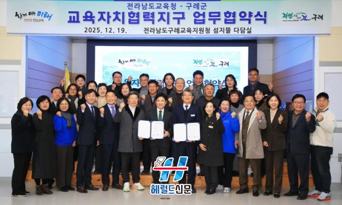 [Çì·²µå½Å¹® = ³ë½Â¾ð ±âÀÚ] ±¸·Ê±ºÀº Áö³ 19ÀÏ, ±¸·Ê±³À°Áö¿øÃ» ¼¶Áö¶ã ´Ù´ã½Ç¿¡¼ Àü¶ó³²µµ±³À°Ã»(±³À°°¨ ±è´ëÁß), ±¸·Ê±³À°Áö¿øÃ», ±¸·Ê±ºÀÇȸ, Çб³Àå, ¹Î°ü»êÇÐÀ§¿ø, Çкθð¿¬ÇÕȸ µî 50¿©¸íÀÌ Âü¼®ÇÑ °¡¿îµ¥¡®±¸·Ê±³À°ÀÚÄ¡Çù·ÂÁö±¸¡¯¾÷¹«Çù¾àÀ» ü°áÇÏ¿´´Ù°í ¹àÇû´Ù.