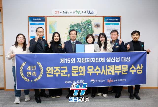 À̹ø Áö¹æÀÚÄ¡´Üü »ý»ê¼º ¿ì¼ö»ç·Ê´Â ¡ã°æÁ¦ ¡ãȯ°æ ¡ã¹®È ¡ãº¹Áö 4°³ ºÐ¾ß¿¡ Àü±¹ 147°³ ÁöÀÚü°¡ Âü¿©ÇØ 1Â÷ ¼¸é½É»ç¿Í 2Â÷ ¹ßÇ¥½É»ç¸¦ °ÅÃÄ ³ôÀº °æÀï·üÀ» ¶Õ°í ÃÖÁ¾ 12°ÇÀÌ ¼±Á¤µÆ´Ù. ¿ÏÁÖ±ºÀº Áö¹æÀÚÄ¡´Üü »ý»ê¼º´ë»óÀ» 4³â ¿¬¼Ó ¼ö»óÇϸç, Àü¹ÝÀûÀÎ ÇàÁ¤ Çõ½Å ¼º°ú¸¦ Áö¼ÓÀûÀ¸·Î ÀÎÁ¤¹Þ¾Ò´Ù.