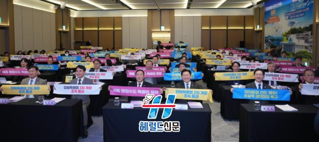 Á¦ÁÖµµ´Â 23ÀÏ ¼¼Á¾½Ã¿¡¼ ¿¸° Ưº°ÀÚÄ¡½Ãµµ ÇàÁ¤ÇùÀÇȸ Á¤±âȸÀÇ¿¡¼ 4°³ Ưº°ÀÚÄ¡½Ãµµ Ưº°¹ý °³Á¤°ú Æ÷°ýÀû ±ÇÇÑÀ̾çÀ» Ã˱¸ÇÏ´Â °øµ¿¼º¸í¼¸¦ äÅÃÇß´Ù°í ¹àÇû´Ù.
