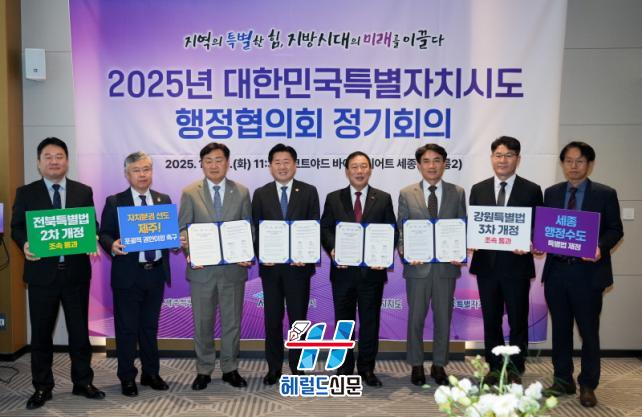 Ưº°ÀÚÄ¡½Ãµµ ÇàÁ¤ÇùÀÇȸ´Â Á¦ÁÖ¡¤¼¼Á¾¡¤°¿ø¡¤ÀüºÏ µî 4°³ Ưº°ÀÚÄ¡½Ãµµ·Î ±¸¼ºµÅ Ưº°ÀÚÄ¡½Ãµµ À§»ó Á¦°í¿Í Áö¹æ½Ã´ë ¼±µµ¸¦ ¸ñÇ¥·Î ÁÖ¿ä Á¤Ã¥ Çö¾È°ú »ó»ý Çù·Â °úÁ¦¸¦ ³íÀÇÇϰí ÀÖ´Ù.