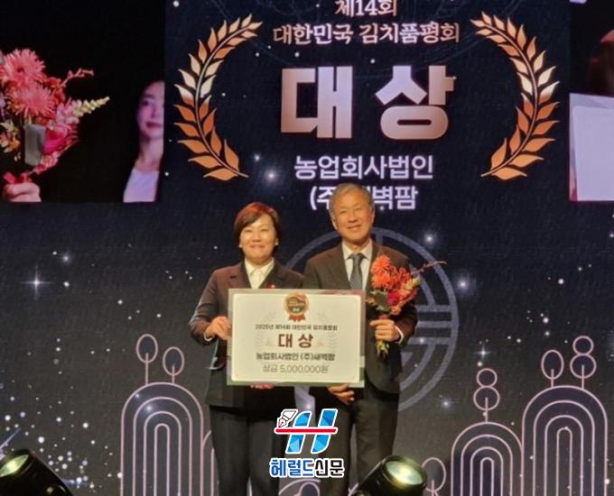 Àü¶ó³²µµ¿¡ µû¸£¸é ³ó¸²Ãà»ê½ÄǰºÎ¿Í Çѱ¹³ó¼ö»ê½ÄǰÀ¯Åë°ø»ç(aT)°¡ °øµ¿ ÁÖÃÖÇÑ ±¹³» ÃÖ°í ±ÇÀ§ÀÇ ±èÄ¡ Æò°¡´ëȸÀÎ ¡®´ëÇѹα¹ ±èġǰÆòȸ¡¯¿¡¼ À强ÀÇ ¢ß»õº®ÆÊÀÌ Àüü ´ë»óÀ» ¹Þ¾Ò´Ù. ÀüÅë ¹ßÈ¿±â¼ú°ú öÀúÇÑ Ç°Áú °ü¸® ¿ª·®À» ÀÎÁ¤¹ÞÀ¸¸ç Àü³² ±èÄ¡ÀÇ ¿ì¼ö¼ºÀ» Àü±¹¿¡ ¾Ë·È´Ù.