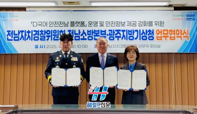 [Çì·²µå½Å¹® = ³ë½Â¾ð ±âÀÚ] Àü³²ÀÚÄ¡°æÂûÀ§¿øÈ¸´Â Àü³²¼Ò¹æº»ºÎ, ±¤ÁÖÁö¹æ±â»óû°ú Áö³ 23ÀÏ ¾÷¹«Çù¾àÀ» ÇØ ¿Ü±¹ÀÎÀÇ ¾ÈÀüÇÑ »ýȰÀ» º¸È£Çϰí Áö¿øÇÏ´Â ´Ù±¹¾î ¾ÈÀüÀü³² ¾Û ¿î¿µ°ú ¾ÈÀüÁ¤º¸ Á¦°øÀ» ÇÑÃþ °ÈÇϱâ·Î Çß´Ù.