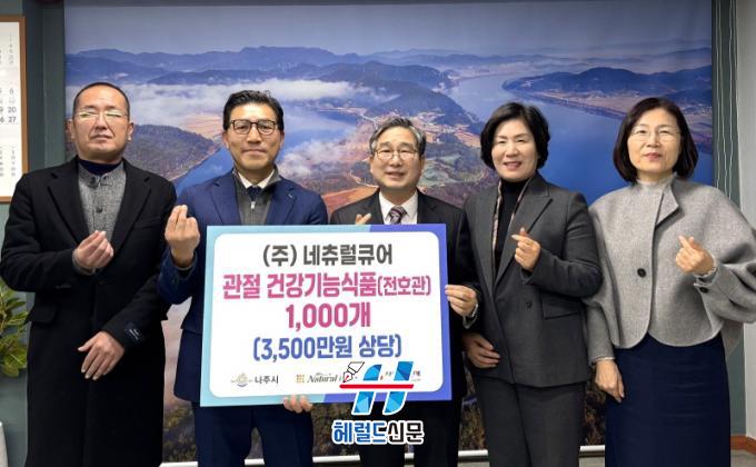 °»ó±¸ ³ªÁÖ ºÎ½ÃÀåÀº ¡°»ê¸² ¿¬±¸ ¼º°ú¸¦ ¹ÙÅÁÀ¸·Î ÇÑ °Ç°±â´É½ÄǰÀ» ¿¬¸» Ãë¾à°èÃþ¿¡ Áö¿øÇØ ÁֽТ߳×Ãò·²Å¥¾î¿Í Àü³²»ê¸²¿¬±¸¿ø¿¡ °¨»çµå¸°´Ù¡±¸ç ¡°±âŹµÈ ¹°Ç°Àº ÇÊ¿äÇÑ ÀÌ¿ôµé¿¡°Ô ¼ÒÁßÈ÷ Àü´ÞÇϰڴ١±°í ¸»Çß´Ù.