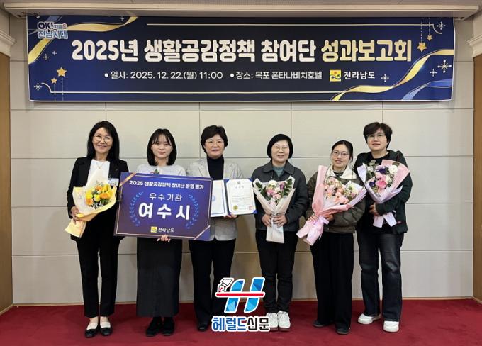 [Çì·²µå½Å¹® = ³ë½Â¾ð ±âÀÚ] ¿©¼ö½Ã°¡ 2025³â »ýȰ°ø°¨Á¤Ã¥ Âü¿©´Ü Æò°¡¿¡¼ Àü³²µµ ½Ã¡¤±º °¡¿îµ¥ 1À§¸¦ Â÷ÁöÇØ µµÁö»ç ±â°ü ǥâÀ» ¼ö»óÇß´Ù.