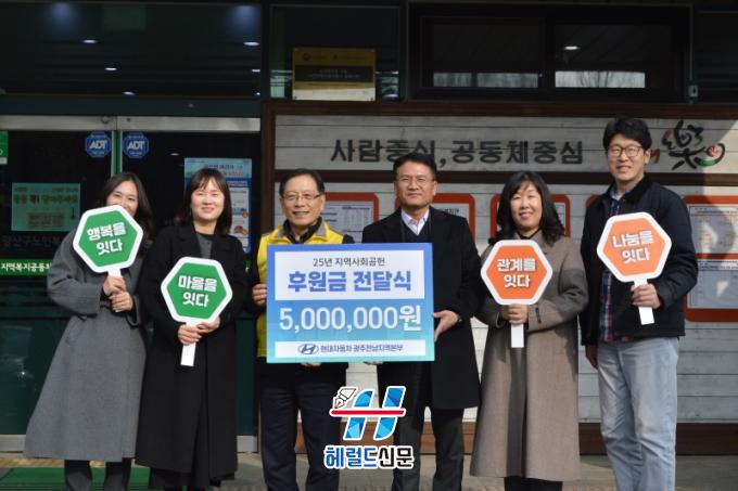 [Çì·²µå½Å¹® = ³ë½Â¾ð ±âÀÚ] Çö´ëÀÚµ¿Â÷ ±¤ÁÖÀü³²Áö¿ªº»ºÎ(º»ºÎÀå ±èÁø¸ñ)°¡ ÃÖ±Ù ´õºÒ¾î¶ô³ëÀκ¹Áö°ü¿¡ »çȸ°øÇå±â±Ý 500¸¸ ¿øÀ» ÈÄ¿øÇß´Ù.