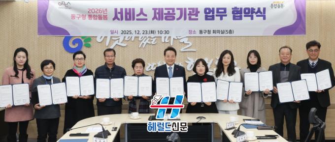 [Çì·²µå½Å¹® = Á¤µ·Ã¶ ±âÀÚ] ±¤ÁÖ µ¿±¸´Â Áö³ 23ÀÏ ±¸Ã»¿¡¼ µ¿±¸Áö¿ªÀÚȰ¼¾ÅÍ µî 11°³ ¼ºñ½º Á¦°ø±â°ü°ú ¾÷¹«Çù¾àÀ» ü°áÇϰí, 2026³â ¡®µ¿±¸Çü ÅëÇÕµ¹º½¡¯ »ç¾÷À» º»°Ý ÃßÁøÇÑ´Ù°í ¹àÇû´Ù.