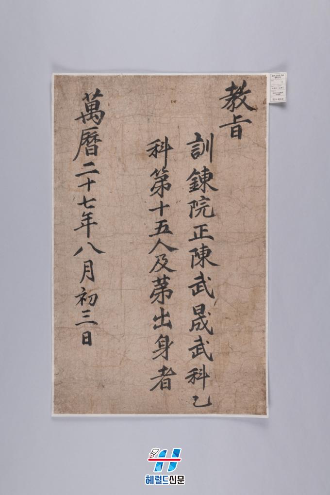 ¡®°íÈï ¹«¿»ç ¼ÒÀå °í¹®¼¡¯´Â µµ ÁöÁ¤ À¯Çü¹®ÈÀ¯»êÀ¸·Î ÁöÁ¤µÆ´Ù. Á¶¼± ¹«¹Ý°¡¹® ¿ª»ç¸¦ ´ãÀº °í¹®¼·Î ÀÓÁø¿Ö¶õ ´ç½Ã ¼±¹«¿øÁ¾°ø½Å 1µî¿¡ Ã¥·ÏµÈ Áø¹«¼º(1566~1638)°ú ±× Àϰ¡ 5´ë¿¡ °ÉÄ£ ¹®¼ 70Á¡À¸·Î ±¸¼ºµÆ´Ù. È«ÆÐ¡¤±³Áö¡¤È£±¸´ÜÀÚ¡¤¼°£·ù µî ´Ù¾çÇÑ À¯ÇüÀÇ ÀڷḦ Æ÷ÇÔÇϰí ÀÖ´Ù. °üû¿¡¼ Ã¥À¸·Î Æì³½ °üÂù »ç·á¿¡ ±â·ÏµÇÁö ¾ÊÀº Àι°°ú ÇâÃÌ»çȸÀÇ ½ÇÁ¦ ¸ð½ÀÀ» ±¸Ã¼ÀûÀ¸·Î º¸¿©ÁÖ´Â ÀÚ·á·Î¼, ÀÓÁø¿Ö¶õ»ç¿Í Á¶¼± Èı⠹«¹Ý°¡¹® ¿¬±¸¿¡ Áß¿äÇÑ ÇмúÀû °¡Ä¡¸¦ Áö´Ñ °ÍÀ¸·Î Æò°¡µÈ´Ù.