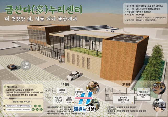 Á¤¼ºÁÖ ±èÁ¦½ÃÀåÀº ¡°À̹ø ÀÎÁ¤»ç¾÷À» ÅëÇØ ±Ý»ê¸é ÁÖ¹ÎÀÇ °Ç°°ú Á¤¼ µ¹º½ ü°è¸¦ °ÈÇϰí Áö¿ª ÀǷᡤº¹Áö ¼ºñ½º Á¢±Ù¼ºÀ» ³ôÀÏ ¼ö ÀÖÀ» °ÍÀ¸·Î ±â´ëÇÑ´Ù¡±¸ç, ¡°Àå±â°£ Ȱ¿ëµÇÁö ¸øÇß´ø ¿¾ ¹ö½ºÅ͹̳ΠºÎÁö°¡ Áö¿ªÀÇ »õ·Î¿î Á߽ɰø°£À¸·Î Àçź»ýÇÔ¿¡ µû¶ó ±Ý»ê¸é »ýȰ±Ç Ȱ¼ºÈ¿¡ Å« µµ¿òÀÌ µÉ °Í¡±À̶ó°í ¹àÇû´Ù. ÀÌ¾î ¡°±Ý»ê ´Ù(Òý)´©¸®¼¾ÅͰ¡ ÁֹΠÁÖµµÀÇ ÇÁ·Î±×·¥ ¿î¿µ°ú °øµ¿Ã¼ Ȱµ¿À» ÃËÁøÇÔÀ¸·Î½á Áö¼Ó °¡´ÉÇÑ Áö¿ª Ȱ·Â ±â¹ÝÀ» ¸¶·ÃÇÏ´Â °è±â°¡ µÉ °ÍÀ¸·Î ±â´ëÇÑ´Ù¡±°í ¸»Çß´Ù.