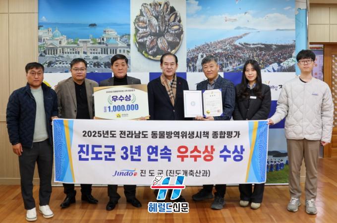 [Çì·²µå½Å¹® = ¼Û±Ù³² ±âÀÚ] Áøµµ±ºÀº Àü¶ó³²µµ¿¡¼ ÁÖ°üÇÑ ¡®2025³â µ¿¹°¹æ¿ªÀ§»ý½ÃÃ¥ Á¾ÇÕÆò°¡¡¯¿¡¼ ¿ì¼ö»óÀ» ¹ÞÀ¸¸ç, 3³â ¿¬¼Ó ¿ì¼ö Áö¹æÀÚÄ¡´Üü·Î ¼±Á¤µÆ´Ù.