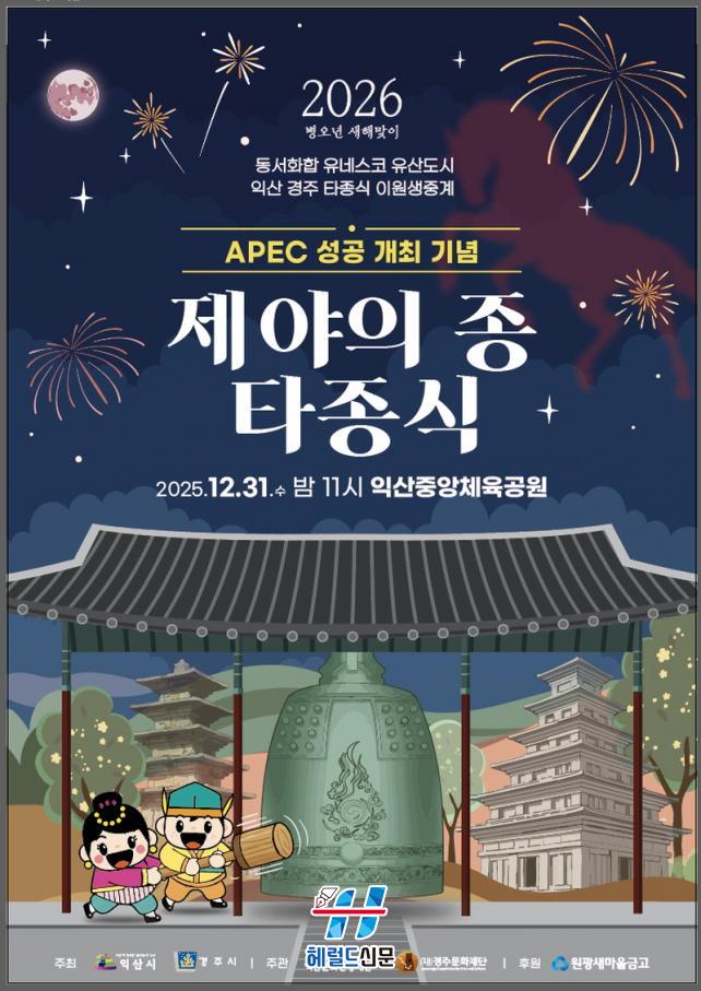 ÀÍ»ê½Ã °ü°èÀÚ´Â "À̹ø Á¦¾ßÀÇ Á¾ Çà»ç´Â ÀÍ»ê°ú °æÁÖÀÇ °øµ¿ ¼º°ú¸¦ ±â³äÇϰí, ½Ã¹Î°ú ÇÔ²² »õÇØ Èñ¸ÁÀ» ³ª´©´Â »ó¡ÀûÀÎ ÀÚ¸®"¶ó¸ç "2026³â º´¿À³â »õÇØ¸¦ µû¶æÇÑ ¸¶À½À¸·Î ½ÃÀÛÇÒ ¼ö ÀÖµµ·Ï Á¤¼ºÀ» ´ÙÇØ ÁغñÇϰí ÀÖ´Â ¸¸Å ¸¹Àº °ü½ÉÀ» ºÎʵ台´Ù"°í ´çºÎÇß´Ù.