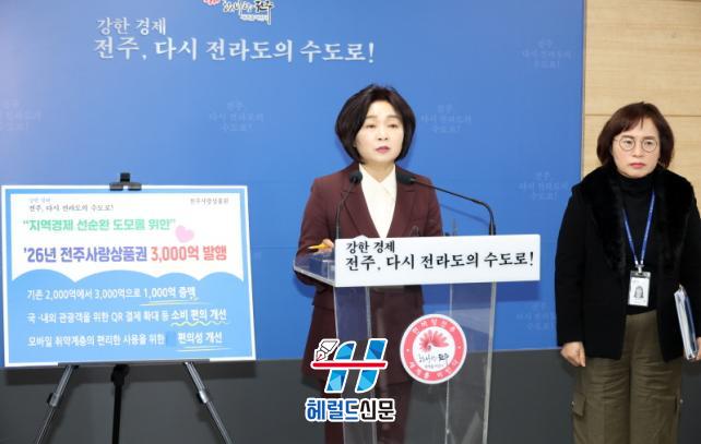 ÀüÁÖ½Ã, 2026³â ¹Î»ý°æÁ¦ Ȱ¼ºÈÀ§ÇÑ ÀüÁÖ»ç¶û»óǰ±Ç ¹ßÇà ±Ô¸ð È®´ë ¹× °³¼±¹æ¾È ¹ßÇ¥