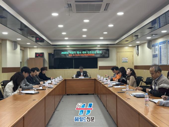 [Çì·²µå½Å¹® = ³ë½Â¾ð ±âÀÚ] ±¤¾ç½Ã´Â Áö³ 24ÀÏ Àç³¾ÈÀü»óȲ½Ç¿¡¼ ÇØ¸ÂÀÌ Çà»ç¸¦ °³ÃÖÇÏ´Â 8°³ À¾¸éµ¿°ú ±¤¾ç°æÂû¼, ±¤¾ç¼Ò¹æ¼ °ü°èÀÚ°¡ Âü¼®ÇÑ °¡¿îµ¥ 2026³â ÇØ¸ÂÀÌ Çà»ç ´ëºñ ¾ÈÀüÁ¡°Ë ȸÀǸ¦ °³ÃÖÇß´Ù.