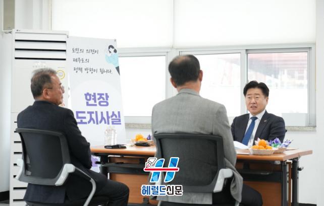 [Çì·²µå½Å¹® = ³ë½Â¾ð ±âÀÚ] Á¦ÁÖÆ¯º°ÀÚÄ¡µµ´Â 26ÀÏ ¿ÀÈÄ 2½Ã ¼±ÍÆ÷½Ã ¼È«µ¿Áֹμ¾ÅÍ¿¡¼ ¡®ÇöÀå µµÁö»ç½Ç¡¯À» ¿°í ³²ºÎ±Ç¿ª µµ¹ÎµéÀÇ »ý»ýÇÑ ¸ñ¼Ò¸®¸¦ Á÷Á¢ µé¾ú´Ù.