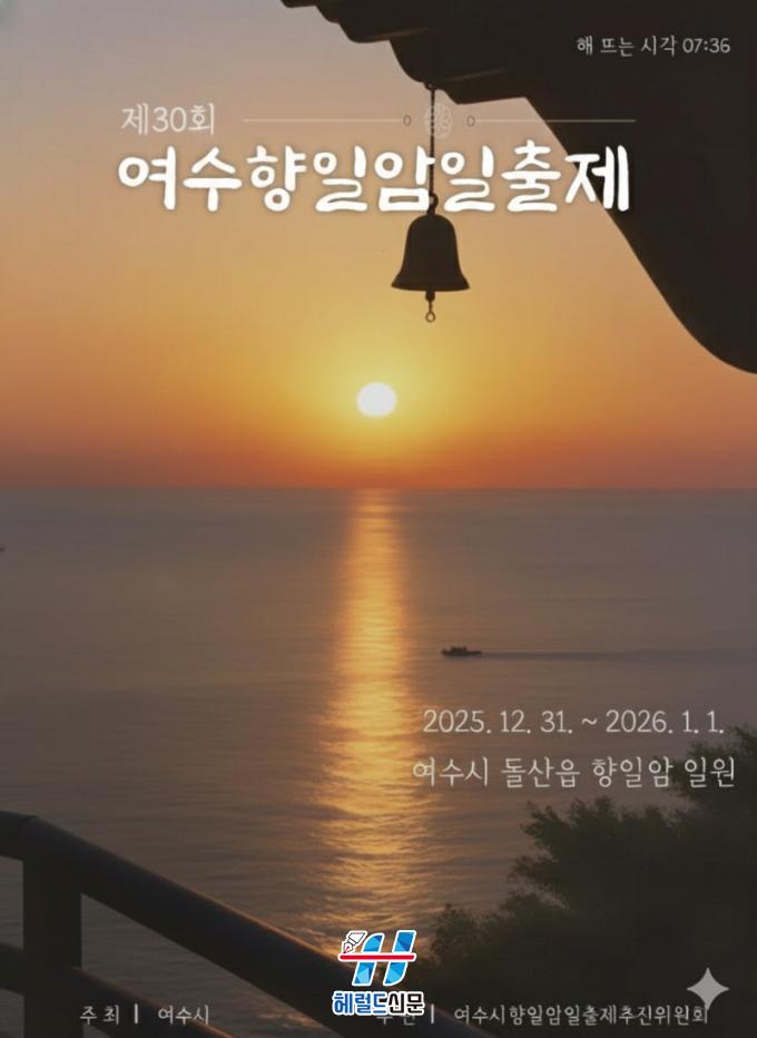 [Çì·²µå½Å¹® = ³ë½Â¾ð ±âÀÚ] ¿©¼ö½Ã´Â ¿À´Â 12¿ù 31ÀϺÎÅÍ 2026³â 1¿ù 1ÀϱîÁö Àü±¹ 4´ë °üÀ½¼ºÁö Áß ÇϳªÀÌÀÚ ³²ÇØ¾È ´ëÇ¥ ÇØµ¸ÀÌ ¸í¼ÒÀÎ µ¹»ê ÇâÀÏ¾Ï ÀÏ¿ø¿¡¼ ¡®Á¦30ȸ ¿©¼öÇâÀϾÏÀÏÃâÁ¦¡¯¸¦ °³ÃÖÇÑ´Ù°í ¹àÇû´Ù.