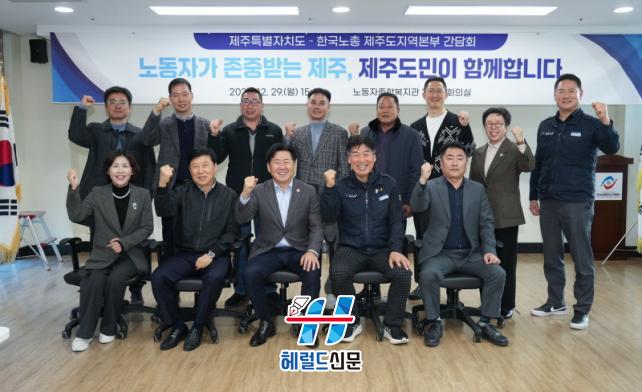[Çì·²µå½Å¹® = ³ë½Â¾ð ±âÀÚ] Á¦ÁÖÆ¯º°ÀÚÄ¡µµ°¡ ³ëµ¿ Çö¾È¿¡ ´ëÇÑ ÇöÀåÀÇ ¸ñ¼Ò¸®¸¦ ûÃëÇÏ°í ³ë¡¤Á¤ °£ ¼ÒÅëÀ» °ÈÇϱâ À§ÇØ Çѱ¹³ëÃÑ Á¦ÁÖµµÁö¿ªº»ºÎ¿Í °£´ãȸ¸¦ °³ÃÖÇß´Ù.