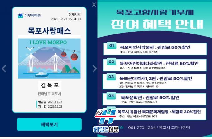 [Çì·²µå½Å¹® = ³ë½Â¾ð ±âÀÚ] ¸ñÆ÷½Ã´Â °íÇâ»ç¶û±âºÎÁ¦ Âü¿©ÀÚ¸¦ ´ë»óÀ¸·Î ¡®¸ñÆ÷»ç¶ûÆÐ½º¡¯¸¦ ¹ß±ÞÇÑ´Ù°í 30ÀÏ ¹àÇû´Ù.
