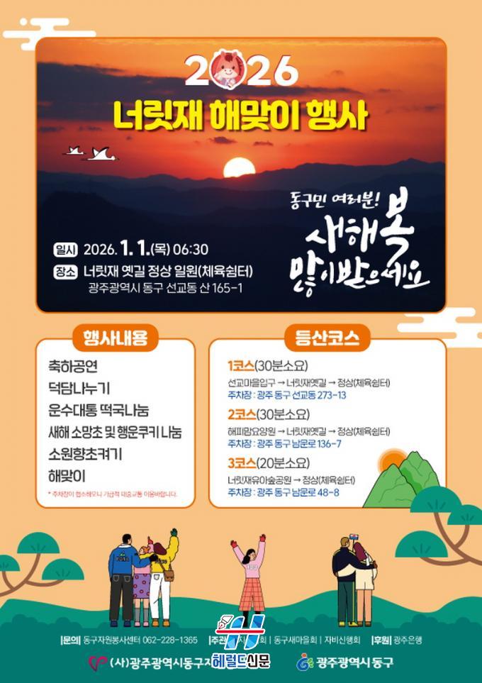 [Çì·²µå½Å¹® = Á¤µ·Ã¶ ±âÀÚ] ±¤ÁÖ µ¿±¸´Â 2026³â º´¿À³â »õÇØ¸¦ ¸Â¾Æ 1¿ù1ÀÏ ¿ÀÀü 7½Ã ³Ê¸´Àç ¿¾±æ Á¤»ó(üÀ°½°ÅÍ)¿¡¼ ÇØ¸ÂÀÌ Çà»ç¿Í ÇÔ²² ¹æ¹®°´¿¡°Ô ¶±±¹À» ³ª´©´Â ¡®2026³â º´¿À³â ÇØ¸ÂÀÌ ¶±±¹³ª´® Çà»ç¡¯¸¦ °³ÃÖÇÑ´Ù°í ¹àÇû´Ù.