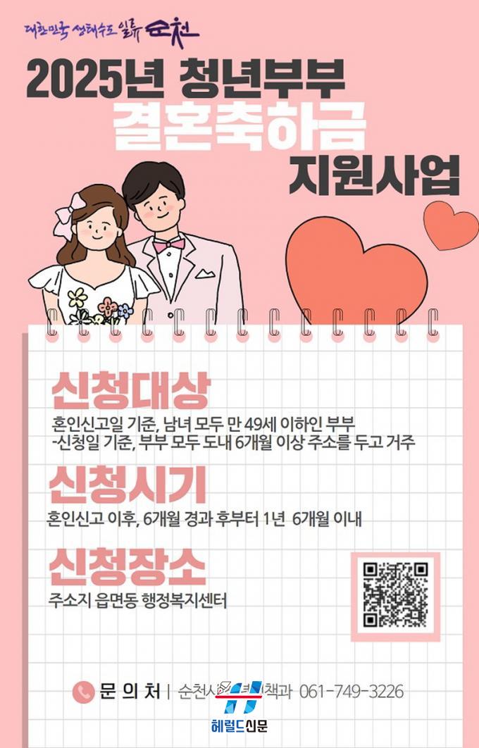 [Çì·²µå½Å¹® = ³ë½Â¾ð ±âÀÚ] ¼øÃµ½Ã´Â û³â¼¼´ëÀÇ °áÈ¥ Ãʱ⠰æÁ¦Àû ºÎ´ãÀ» ÁÙÀÌ°í ¾ÈÁ¤ÀûÀÎ Áö¿ª Á¤ÂøÀ» µ½±â À§ÇØ ÃßÁøÇÑ ¡®2025³â û³âºÎºÎ °áÈ¥ÃàÇÏ±Ý Áö¿ø»ç¾÷¡¯À» ¼º°øÀûÀ¸·Î ¸¶¹«¸®Çß´Ù°í ¹àÇû´Ù.