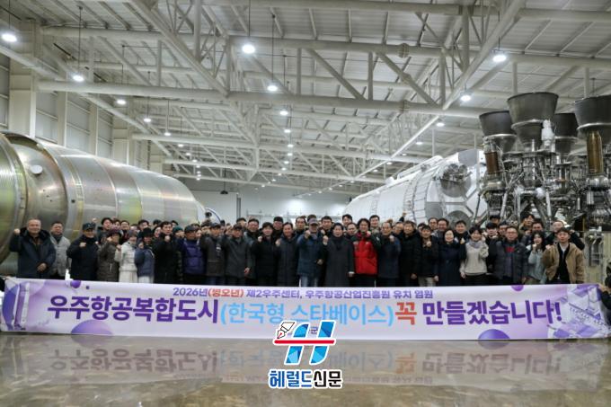 °ø¿µ¹Î ±º¼ö´Â ¡°³ª·Î¿ìÁÖ¼¾ÅÍ¿¡¼ »õÇØ ±ºÁ¤À» ½ÃÀÛÇÏ´Â °ÍÀº °íÈïÀÌ ´ëÇѹα¹ ¿ìÁÖ»ê¾÷ÀÇ Áß½ÉÀÓÀ» ¼±¾ðÇÏ´Â »ó¡Àû Ãâ¹ß¡±À̶ó¸ç ¡°2026³â¿¡´Â Á¦2¿ìÁÖ¼¾ÅÍ¿Í ¿ìÁÖÇ×°ø»ê¾÷ÁøÈï¿ø À¯Ä¡, ¿ìÁÖÇ×°øº¹ÇÕµµ½Ã °Ç¼³ ±â¹Ý ¸¶·ÃÀ» Â÷Áú ¾øÀÌ ÃßÁøÇØ °íÈïÀ» ±¹°¡ ¿ìÁÖÀü·«ÀÇ ÇÙ½É °ÅÁ¡ÀÌÀÚ ¹Ì·¡Çü ¿ìÁÖµµ½Ã·Î µµ¾à½ÃŰ°Ú´Ù¡±°í ¸»Çß´Ù.