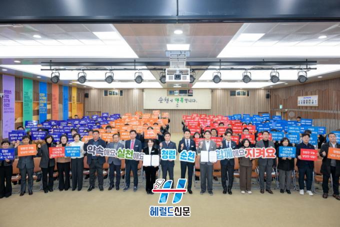 [Çì·²µå½Å¹® = ³ë½Â¾ð ±âÀÚ] ¼øÃµ½Ã´Â 2ÀÏ ´ëȸ½Ç¿¡¼ ½Ã °øÁ÷ÀÚµéÀÌ Âü¼®ÇÑ °¡¿îµ¥ 2026³â ½Ã¹«½ÄÀ» ¿°í »õÇØ ½ÃÁ¤ ¿î¿µ ¹æÇâ°ú ºñÀüÀ» °øÀ¯Çß´Ù.