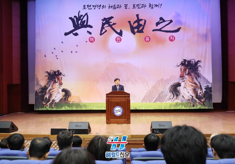 ½Ã¹«½Ä ¸¶¹«¸®¿¡¼´Â Àü Á÷¿øÀÌ 'µµ¹Î°ú ÇÔ²²ÇÏ´Â ÀüºÏ'À̶ó´Â ¹®±¸°¡ ÀûÈù ÇÇÄÏÀ» ÀÏÁ¦È÷ µé¾î ¿Ã·È´Ù. 2026³â µµÁ¤ »çÀÚ¼º¾î '¿©¹ÎÀ¯Áö(æ¨ÚÅë¦ñý¡¤¹é¼º°ú ´õºÒ¾î ÇÔ²²ÇÑ´Ù)'ÀÇ Àǹ̸¦ µÇ»õ±â¸ç »õÇØ µµÁ¤¿¡ ´ëÇÑ °ø°¨°ú ´ÙÁüÀ» ÇÔ²²Çß´Ù.