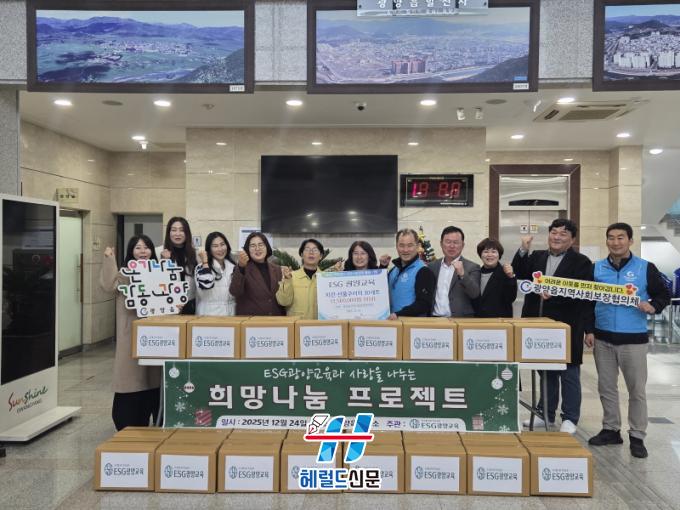 [Çì·²µå½Å¹® = ³ë½Â¾ð ±âÀÚ] ±¤¾ç½Ã ±¤¾çÀ¾Àº ESG±¤¾ç±³À°(ȸÀå ¹ÚÀÚ¿µ)ÀÌ Áö³ 24ÀÏ Áö¿ª û¼Ò³âÀ» ´ë»óÀ¸·Î ¼±¹°²Ù·¯¹Ì 20»óÀÚ(100¸¸¿ø »ó´ç)¸¦ ±¤¾çÀ¾Áö¿ª»çȸº¸ÀåÇùÀÇü(°ø°øÀ§¿øÀå ±è¹Ì¶õ, ¹Î°£À§¿øÀå ¼Û±Ù¹è)¿¡ ÁöÁ¤ ±âŹÇß´Ù°í ¹àÇû´Ù.