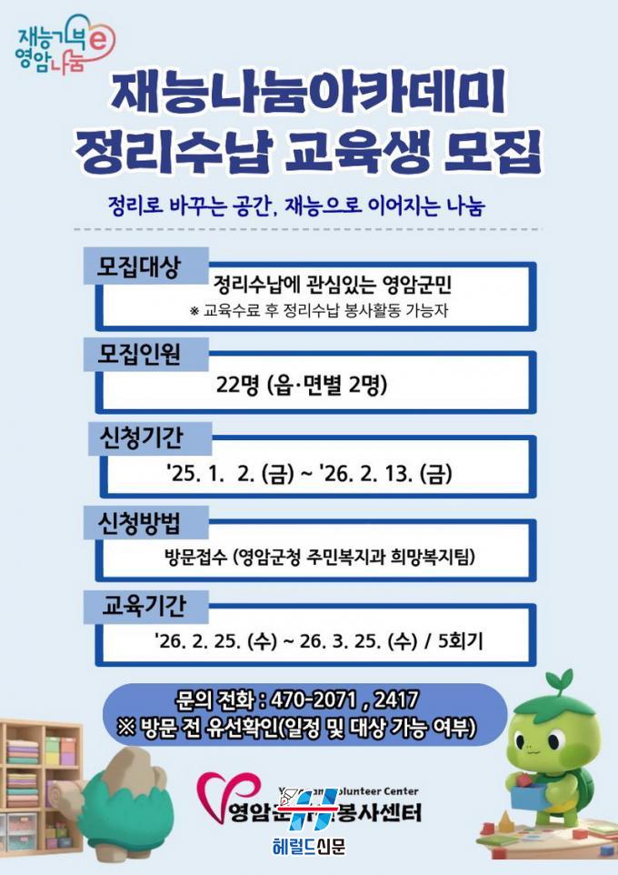 [Çì·²µå½Å¹® = ¼Û±Ù³² ±âÀÚ] ¿µ¾Ï±ºÀº ±º¹ÎÀÇ Àç´É±âºÎ ¿ª·®À» °ÈÇϰí Áö¿ª»çȸ µ¹º½À» È®´ëÇϱâ À§ÇØ ¡®2026³â Àç´É³ª´® ¾ÆÄ«µ¥¹Ì(Á¤¸®¼ö³³ °úÁ¤)¡¯Âü¿©ÀÚ¸¦ ¸ðÁýÇÑ´Ù.