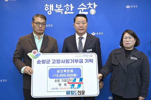 [Çì·²µå½Å¹® = ³ë½Â¾ð ±âÀÚ] ¼øÃ¢±ºÀº 6ÀÏ ¼øÃ¢ ±â¾÷ÀÎ °¡Á· ¹Ú¿Á¼ö ¾¾°¡ ¼øÃ¢±º¿¡ °íÇâ»ç¶û±âºÎ±Ý 500¸¸¿øÀ» ±âŹÇß´Ù°í ¹àÇû´Ù.