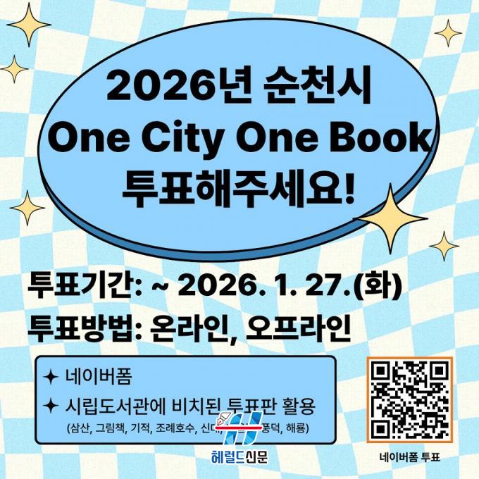 [Çì·²µå½Å¹® = ³ë½Â¾ð ±âÀÚ] ¼øÃµ½Ã°¡ ¿À´Â 27ÀϱîÁö 2026³â ÇÑ ÇØ µ¿¾È ¼øÃµ½Ã¹ÎÀÌ ÇÔ²² ÀÐÀ» ¡®2026³â ¼øÃµ½Ã One City One Book¡¯ ¼±Á¤À» À§ÇÑ ½Ã¹Î ÅõÇ¥¸¦ ÁøÇàÇÑ´Ù°í ¹àÇû´Ù.