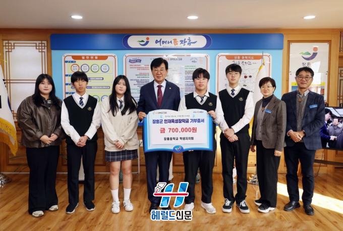 [Çì·²µå½Å¹® = Á¤¾ç¼® ±âÀÚ] ÀåÈïÁßÇб³ ÇлýÀÚġȸ´Â 5ÀÏ (Àç)ÀåÈﱺÀÎÀçÀ°¼ºÀåÇÐȸ¿¡ Áö¿ª ÀÎÀç À°¼ºÀ» À§ÇØ 70¸¸ ¿øÀÇ ÀåÇбÝÀ» ±âŹÇß´Ù.