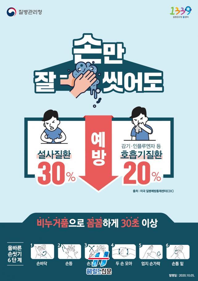 ÈÀå½Ç »ç¿ë ÈÄ, ½Ä»ç Àü, ¿ÜÃâ ÈÄ¿¡´Â ¹Ýµå½Ã È帣´Â ¹°¿¡ ºñ´©¸¦ »ç¿ëÇÏ¿© 30ÃÊ ÀÌ»ó ²Ä²ÄÇÏ°Ô ¼ÕÀ» ¾Ä¾î¾ß ÇÑ´Ù.