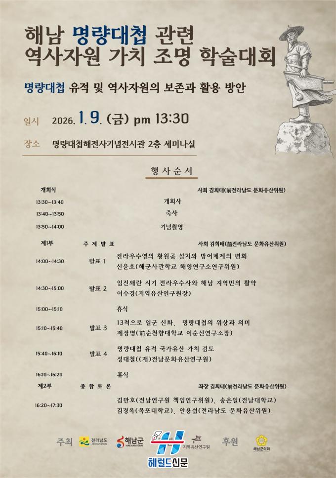 À̳¯ Çмú´ëȸ¿¡¼´Â ¡ãÀü¶ó¿ì¼ö¿µÀÇ ¼³Ä¡¿Í ¹æ¾î üÁ¦ÀÇ º¯È(½ÅÀ±È£, ÇØ±º»ç°üÇб³ ÇØ¾ç¿¬±¸¼ÒÀ§¿ø) ¡ãÀÓÁø¿Ö¶õ ½Ã±â Àü¶ó¿ì¼ö»ç¿Í ÇØ³² Áö¿ª¹ÎÀÇ È°¾à(À̼ö°æ, Áö¿ªÀ¯»ê¿¬±¸¿øÀå) ¡ã13ôÀ¸·Î Àϱº ½ÅÈ, ¸í·®´ëøÀÇ ÀÇ¹Ì¿Í À§»ó(Á¦Àå¸í, Àü ¼øÃµÇâ´ëÀ̼ø½Å¿¬±¸¼ÒÀå) ¡ã¸í·®´ëø À¯Àû ±¹°¡À¯»ê °¡Ä¡ °ËÅä(¼º´ëö, (Àç)Àü³²¹®ÈÀ¯»ê¿¬±¸¿ø) µîÀÇ ÁÖÁ¦ ¹ßÇ¥°¡ À̾îÁú ¿¹Á¤ÀÌ´Ù.