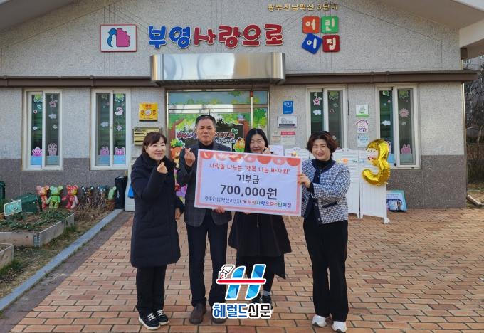 [Çì·²µå½Å¹® = ³ë½Â¾ð ±âÀÚ] Àü¶ó³²µµ ³ªÁֽà ºû°¡¶÷µ¿(µ¿Àå ±è±Í³²)Àº Áö³ 6ÀÏ ±¤ÁÖÀü³²Çõ½Å3´ÜÁö ºÎ¿µ»ç¶ûÀ¸·Î¾î¸°ÀÌÁý(¿øÀå ¹éÁö¿µ)¿¡¼ ÀÌ¿ôµ½±â ¼º±Ý 70¸¸ ¿øÀ» ±âŹÇß´Ù°í ¹àÇû´Ù.