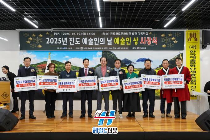 Áö³ 12¿ù¿¡´Â ¹®È¿¹¼úÀÎÀÇ ³¯À» ¸Â¾Æ Áøµµ±º ¿¹ÃÑ, ¹®ÀÎÇùȸ, ¹Ì¼úÇùȸ, »çÁøÀÛ°¡Çùȸ, ¿¬¿¹¿¹¼úÀÎÇùȸ µî 5°³ ´Üü¿Í ¹®È¿¹¼úÀÎ ÀÓÇöÈ£, ¹ÚÁÖ»ý, ¹Ú¼Û¼ö, ¹Ú¿µ°ü, ±è¿ë¿í ¾¾°¡ ÃÑ 970¸¸ ¿øÀ» ±âÅ¹ÇØ ¶æ±íÀº ÇÑÇØ¸¦ ¸¶°¨Çß´Ù.