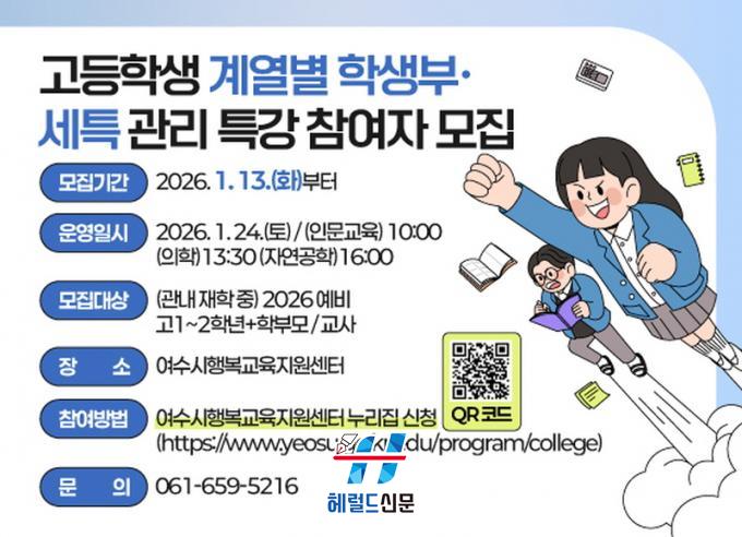 [Çì·²µå½Å¹® = ³ë½Â¾ð ±âÀÚ] ¿©¼ö½Ã°¡ ¿À´Â 1¿ù 24ÀÏ °ü³» ¿¹ºñ °í1, 2Çгâ°ú Çкθ𡤱³»ç¸¦ À§ÇØ ¿©¼ö½ÃÇູ±³À°Áö¿ø¼¾ÅÍ¿¡¼ ¹Ì¸® ÁغñÇÏ´Â ¡®°è¿º° ÇлýºÎ‧¼¼Æ¯ °ü¸® Ư°¡¯À» ¿î¿µÇÑ´Ù.