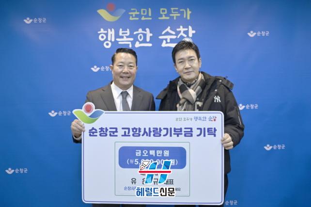[Çì·²µå½Å¹® = ³ë½Â¾ð ±âÀÚ] ¼øÃ¢±ºÀº 9ÀÏ ´ëÀÏÈÇÐ À¯¿î±Ô ´ëÇ¥°¡ °íÇâ»ç¶û±âºÎ±Ý 500¸¸¿øÀ» ±âŹÇß´Ù°í ¹àÇû´Ù.