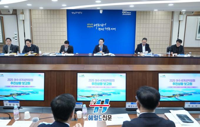 [Çì·²µå½Å¹® = ³ë½Â¾ð ±âÀÚ] Àü¶ó³²µµ´Â 13ÀÏ µµÃ» ¼ÀçÇʽǿ¡¼ 2026 ¿©¼ö¼¼°è¼¶¹Ú¶÷ȸ ÃßÁø»óȲ º¸°íȸ¸¦ ¿°í ¿©¼ö½Ã¡¤Á¶Á÷À§ µî°ú ¹Ú¶÷ȸ ¼º°ø°³ÃÖ¸¦ À§ÇÑ ¡®¿øÆÀ üÁ¦¡¯¸¦ °¡µ¿, Àü½Ã¡¤Çà»ç¡¤¾ÈÀü¡¤±³Åë ºÐ¾ßº° Çù¾÷°ú ÇöÀå ´ëÀÀ·ÂÀ» ³ôÀ̱â·Î Çß´Ù.