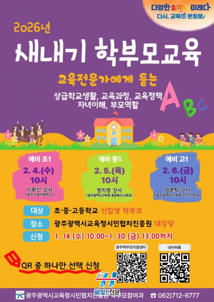 [Çì·²µå½Å¹® = ³ë½Â¾ð ±âÀÚ] ±¤Áֽñ³À°Ã»½Ã¹ÎÇùÄ¡ÁøÈï¿ø(ÀÌÇÏ ½Ã¹ÎÇùÄ¡ÁøÈï¿ø)Àº ¿À´Â 2¿ù 4~6ÀÏ º»¿ø ´ë°´ç¿¡¼ ÃÊ¡¤Áß¡¤°íµîÇб³ ½ÅÀÔ»ý Çкθ𸦠´ë»óÀ¸·Î ¡®2026³â »õ³»±â Çкθð±³À°¡¯À» ¿î¿µÇÑ´Ù.