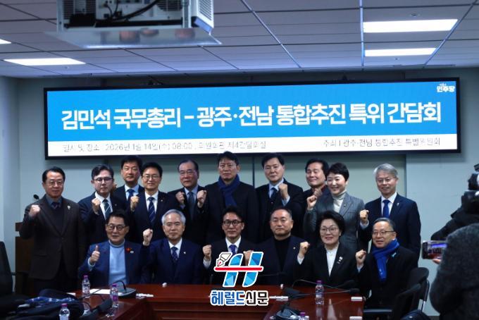 À̹ø °£´ãȸ´Â Àü³²¡¤±¤ÁÖ ÅëÇÕÀÇ Çʿ伺À» ÀçÈ®ÀÎÇϰí, ±è¹Î¼® ±¹¹«ÃѸ®¿Í Àü³²¡¤±¤ÁÖ ±¹È¸ÀÇ¿øÀÌ ÇÔ²² Àü³²¡¤±¤ÁÖ ÅëÇÕ Æ¯º°¹ý Á¦Á¤ÀÇ ¿øÄ¢°ú ¹æÇ⼺, ±Ç¿ªº° ¼÷¿ø»ç¾÷°ú Çö¾È¿¡ ´ëÇØ ÀǰßÀ» ³ª´©±â À§ÇØ ¸¶·ÃµÆ´Ù.