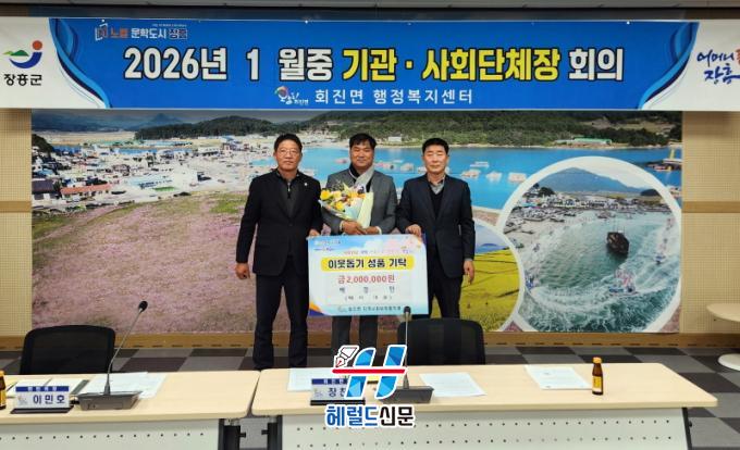 ȸÁø À½¾Çµ¿È£È¸(ȸÀå ±è¿ëÇö) 50¸¸¿ø, Á¤½ÂºÀ ÀåÈﱺ¼öÇù »óÀÓÀÌ»ç 1¹é¸¸¿ø, ¹«±â¸í ÈÄ¿øÀÚ 1¹é¸¸¿ø, 2025³â ȸÁø¸é ÀÌÀåÀÚġȸ(ȸÀå ±è½Â¿ë), 150¸¸¿ø, ¹é°æ¸¸ ÇØ¹Ì ´ëÇ¥°¡ 2¹é¸¸¿øÀ» Áö¿ªÀÇ ¾î·Á¿î ÀÌ¿ô°ú ¼Ò¿Ü°èÃþÀ» µ½°íÀÚ ÄèôÇß´Ù.