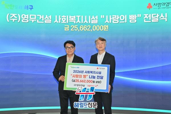 ¹ÚÀçÈ« ¢ß¿µ¹«°Ç¼³ ȸÀåÀº ¡°Áö¿ª»çȸ¿Í ÇÔ²² ¼ºÀåÇØ ¿Â ±â¾÷À¸·Î¼ µµ¿òÀÌ ÇÊ¿äÇÑ ÀÌ¿ôµé¿¡°Ô ÀÛÀº Á¤¼ºÀ» ²ÙÁØÈ÷ ÀüÇÏ°í ½Í¾ú´Ù¡±¸ç ¡°¾ÕÀ¸·Îµµ Áö¼ÓÀûÀÎ »çȸ°øÇå Ȱµ¿À» ÅëÇØ µû¶æÇÑ ³ª´® ¹®È¸¦ È®»êÇØ°¡°Ú´Ù¡±°í ¸»Çß´Ù.