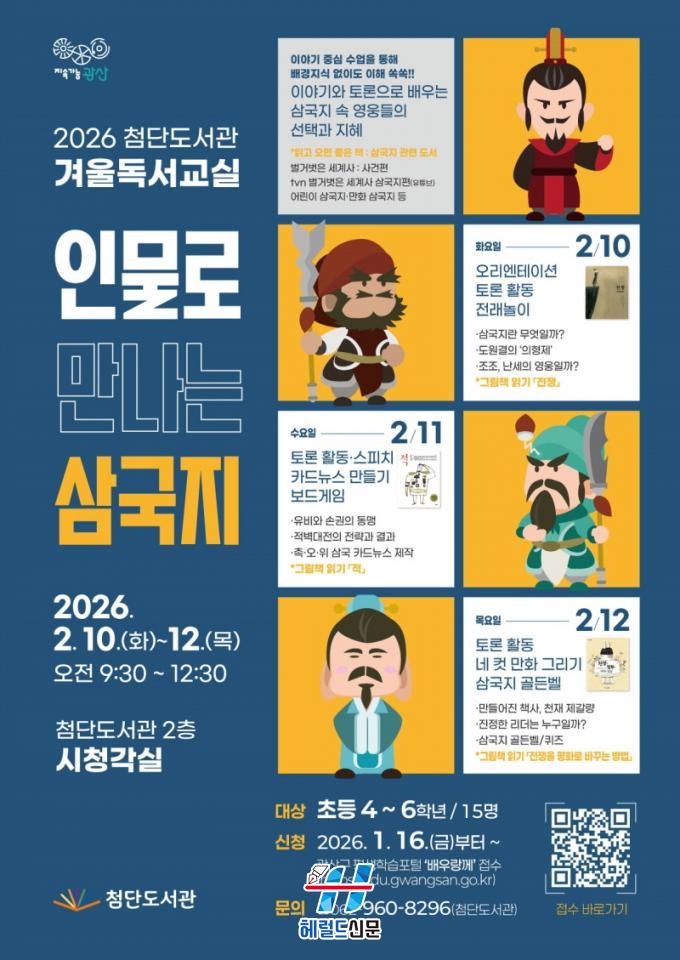 ÷´Üµµ¼°üÀº 2¿ù 10ÀϺÎÅÍ 12ÀϱîÁö 3Àϰ£ ¡®Àι°·Î ¸¸³ª´Â »ï±¹Áö¡¯ ÇÁ·Î±×·¥À» ¿î¿µÇÑ´Ù.¡®Àι°·Î ¸¸³ª´Â »ï±¹Áö¡¯´Â ¾î¸°ÀÌ ´«³ôÀÌ¿¡ ¸ÂÃá »ï±¹Áö ¼Ó Àι°°ú À̾߱⸦ Áß½ÉÀ¸·Î ´Ù¾çÇÑ µ¶ÈÄȰµ¿À» ÅëÇØ °íÀüÀÇ Àç¹Ì¸¦ ÀÌÇØÇÒ ¼ö ÀÖµµ·Ï ±¸¼ºÇß´Ù.