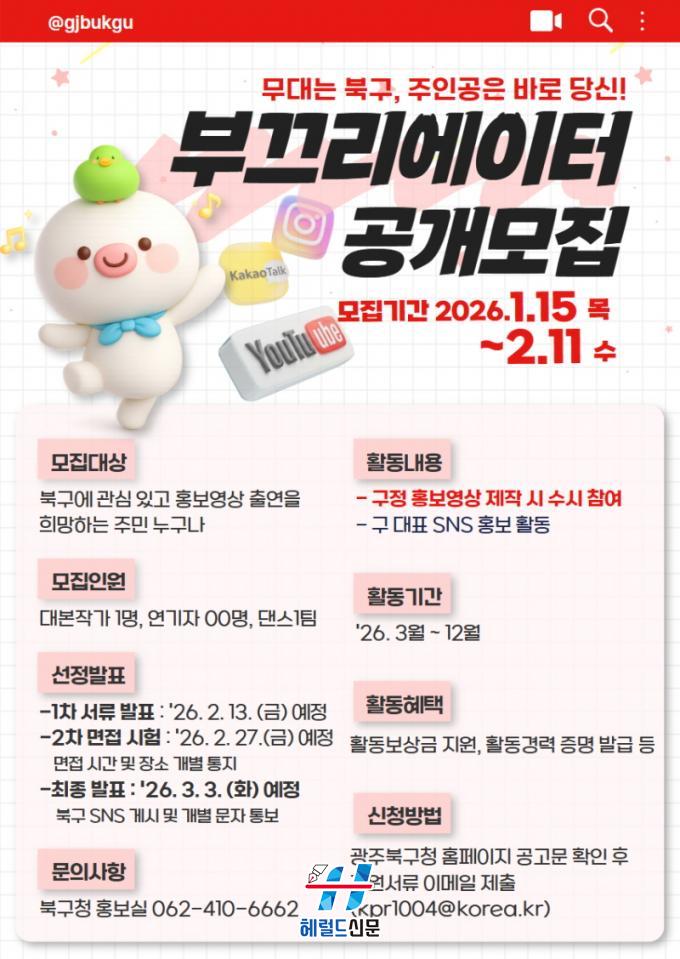 [Çì·²µå½Å¹® = Á¤µ·Ã¶ ±âÀÚ] ±¤ÁÖ±¤¿ª½Ã ºÏ±¸(±¸Ã»Àå ¹®ÀÎ)´Â ÁÖ¹ÎÀÌ Á÷Á¢ ºÏ±¸ÀÇ ¼Ò½ÄÀ» ÀüÇÏ´Â ¡®ºÎ²ô¸®¿¡ÀÌÅÍ¡¯¸¦ ¸ðÁýÇÑ´Ù°í 19ÀÏ ¹àÇû´Ù.