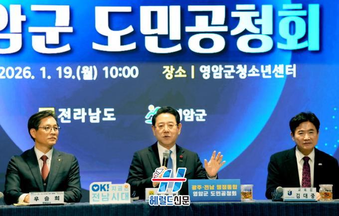[Çì·²µå½Å¹® = ³ë½Â¾ð ±âÀÚ] Àü¶ó³²µµ´Â 19ÀÏ ¿ÀÀü ±¤ÁÖ¡¤Àü³² ÇàÁ¤ÅëÇÕ¿¡ ´ëÇÑ µµ¹Î ÀǰßÀ» Æø³Ð°Ô ¼ö·ÅÇϱâ À§ÇØ ¿µ¾Ï±º û¼Ò³â¼¾ÅÍ ´ë°´ç¿¡¼ ù µµ¹Î°øÃ»È¸¸¦ ¿¾î ÃßÁø ¹æ¾È°ú Ư·Ê ³»¿ë µîÀ» ¼³¸íÇÏ°í µµ¹ÎÀÇ ÀǰßÀ» ±Í´ã¾Æµé¾ú´Ù.