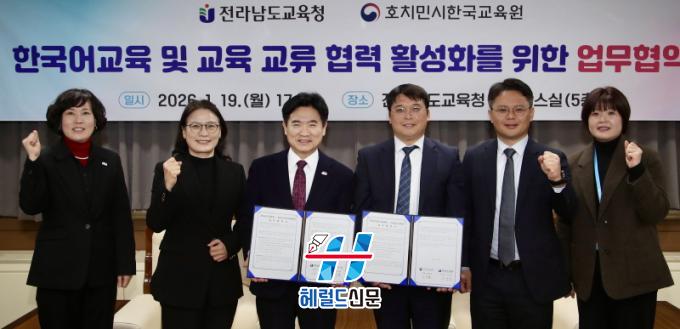 [Çì·²µå½Å¹® = ³ë½Â¾ð ±âÀÚ] Àü¶ó³²µµ±³À°Ã»(±³À°°¨ ±è´ëÁß)°ú ȣġ¹Î½ÃÇѱ¹±³À°¿ø(¿øÀå ¾ÈÈñö)Àº 19ÀÏ Àü¶ó³²µµ±³À°Ã»¿¡¼ Çѱ¹¾î±³À°, ±¹Á¦ ±³À°±³·ù Ȱ¼ºÈ ¹× ¿Ü±¹ÀÎ À¯Çлý À¯Ä¡ Çù·ÂÀ» À§ÇÑ ¾÷¹«Çù¾àÀ» ü°áÇß´Ù.